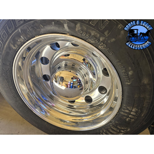 Highly polished 304 premium grade stainless steel for durability and shine. Fits most 20", 22-1/2", and 24-1/2" wheel. Steel/aluminum wheel hub pi...