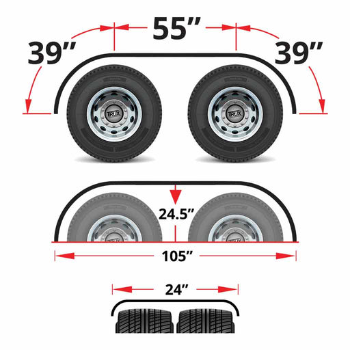 Sold in Pairs Designed to fit 43.5″ O.D Tires Dependable 16 Gauge Stainless Steel Smooth Rolled Edge Design 120″ Overall Fender Length Shipped in ...