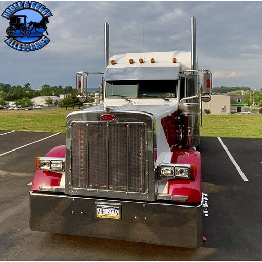 custom front Peterbilt air cleaner mount.3 watermelon with radius ends to match the lights.304 s.s highly polished.heavy duty with 1 year warranty ...