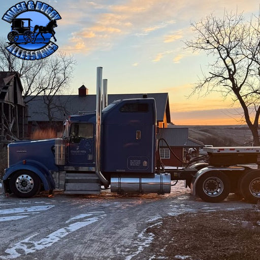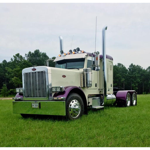 Highly polished 430 stainless steel. Fits Kenworth Aerocab and B-Cab 2007+. 10" drop style. Mounts to oem brackets. Exposed-rivet style for that r...