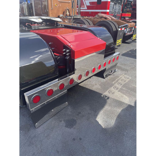 View full detailsIC975020-14 Iowa Customs (Reverse t bar) rear bumper w/12 4" light holes across bottom. stainless with internal bracing.