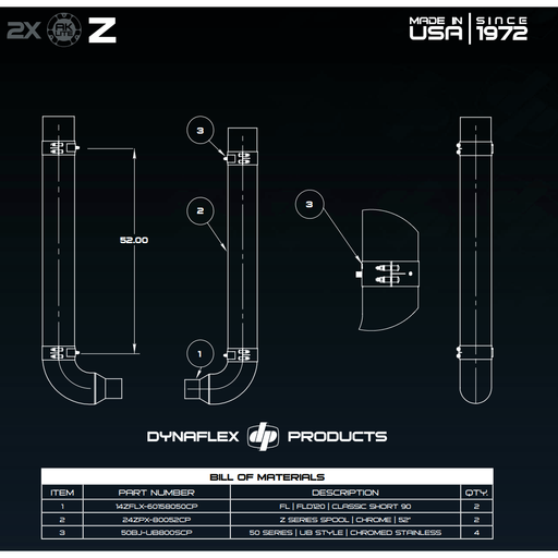 #KRP-50052CP Dynaflex 5'' EXHAUST KIT W/ 52'' SPOOLS & PETE PICKETT ELBOWS (87-03)