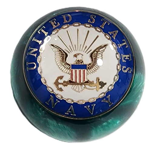 Custom Pearl Green United States Navy Shift Knob. 2-1/4" Diameter. All effects are under the surface and smooth to the touch.